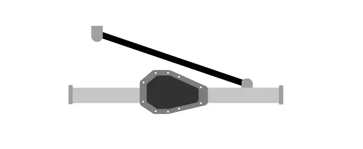 A panhard bar is a straight bar that runs sideways (side-to-side) from the chassis to the axle.
